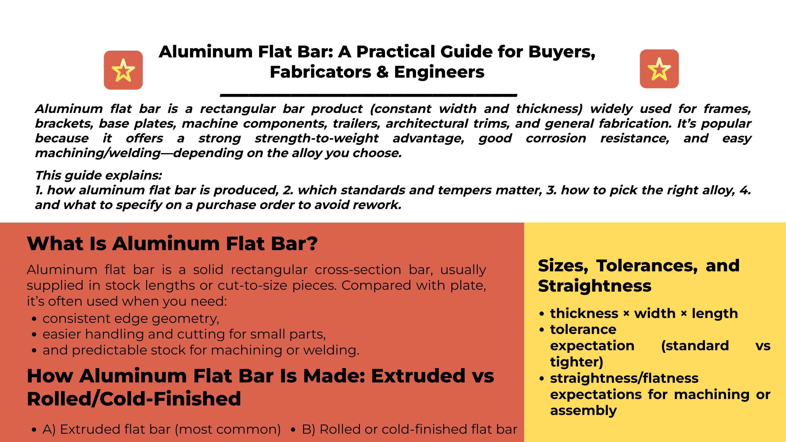 구매자 팁: 작업에 가공/맞춤에 대한 보다 엄격한 치수 제어가 필요한 경우 "냉간 가공"(가능한 경우)을 요청하거나 공차 기대치를 명시적으로 확인하십시오. 모든 플랫 바가 동일하다고 가정하지 마십시오.